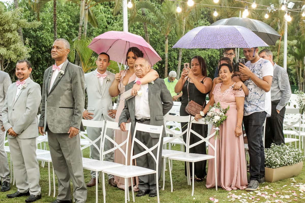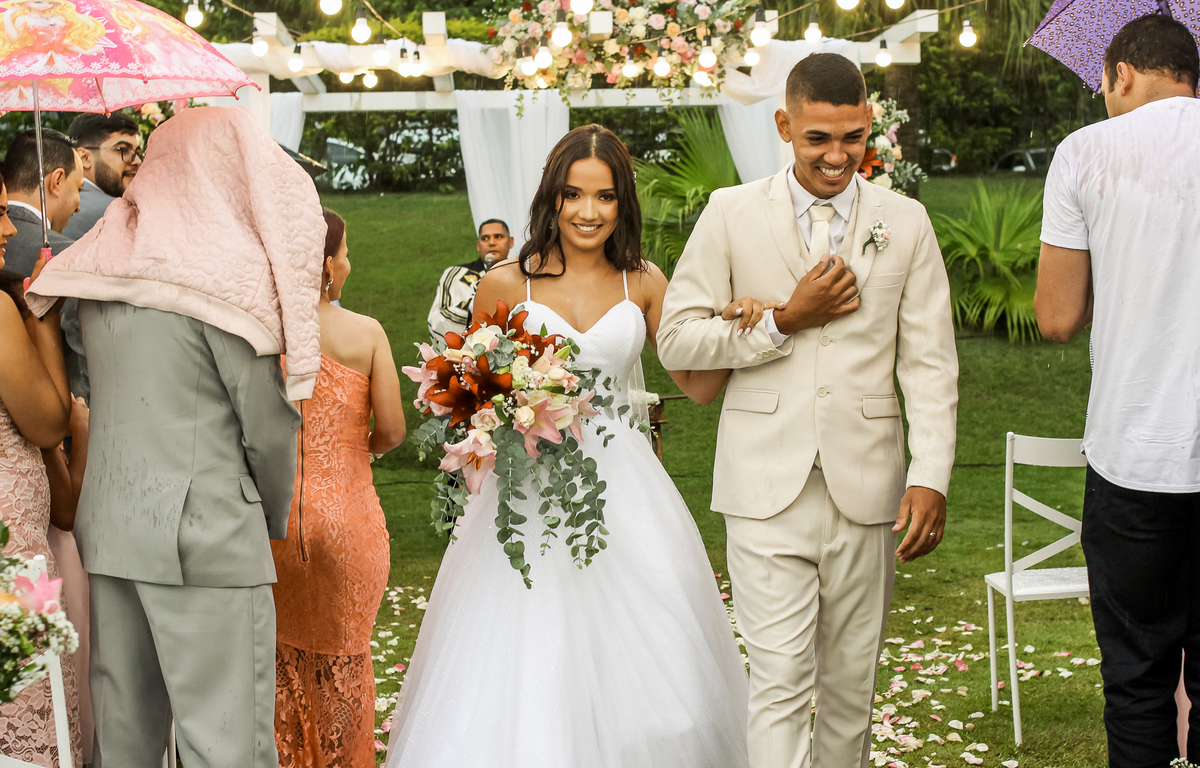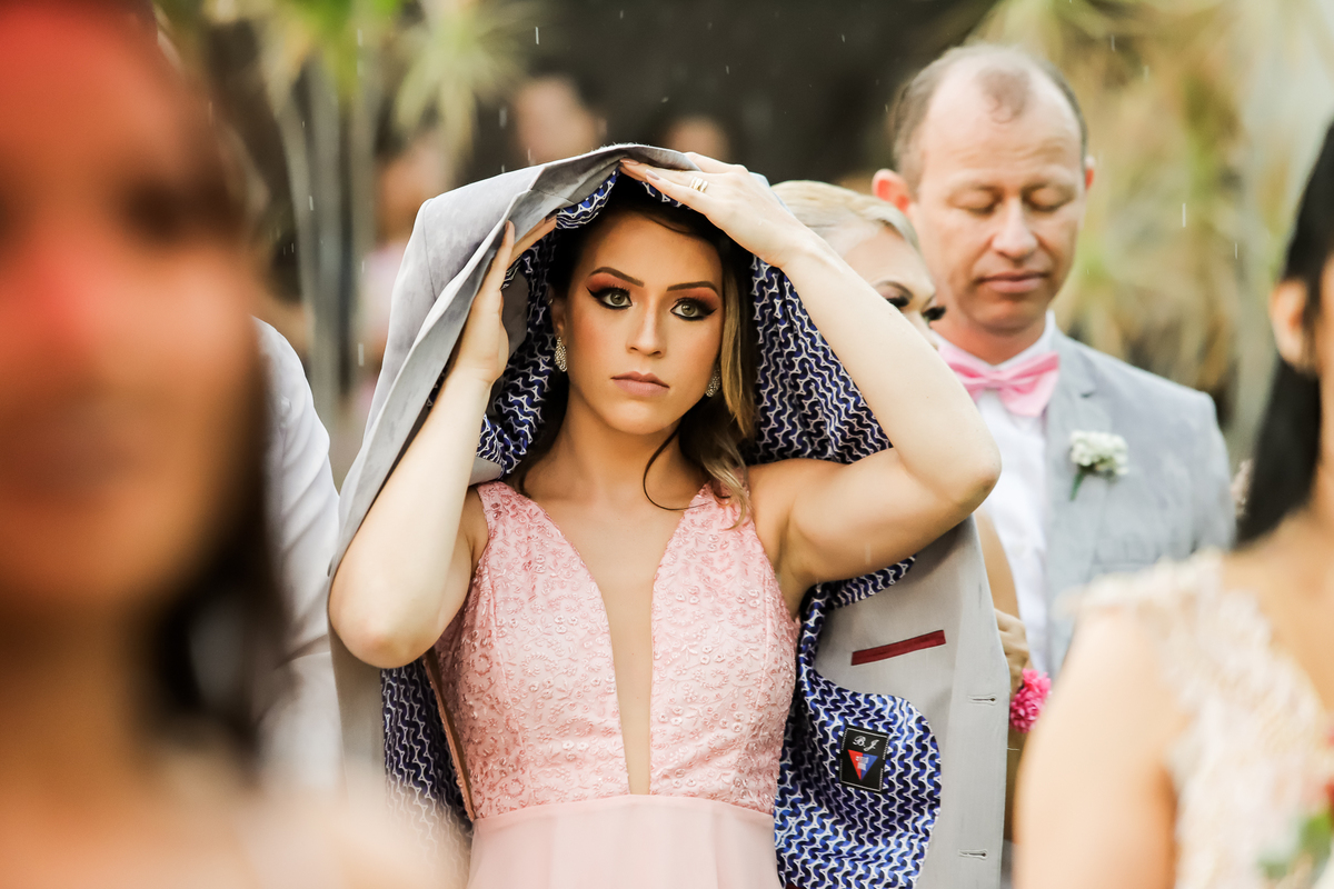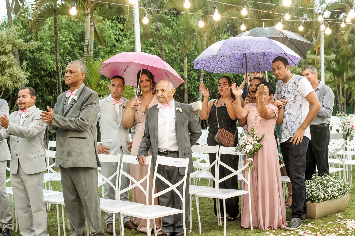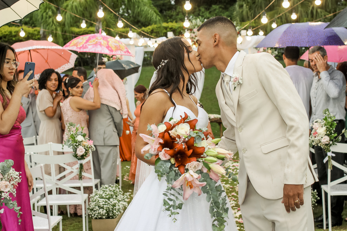 Um casamento lindo que começou com uma luz incrível e terminou com uma chuva que não atrapalhou nem um pouco o amor dos noivos durante a cerimônia, Deus abençou que deu tudo certo o casal não se desperou nem um pouco pelo contrário as vezes algumas coisa saem fora do nosso planejamento como um casamento debaixo da chuva mais isso só fez deixar o casamento mais romântico.