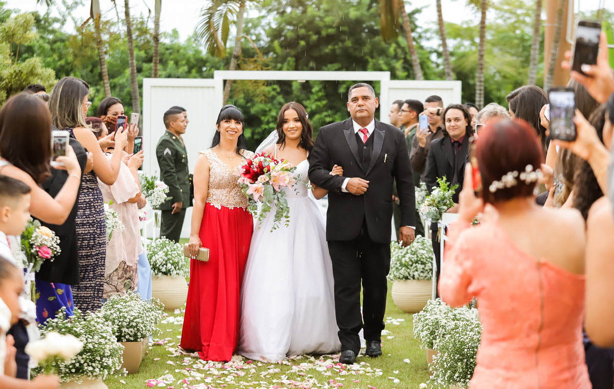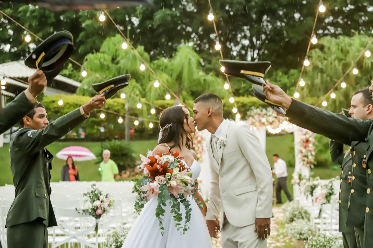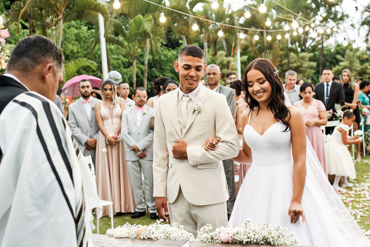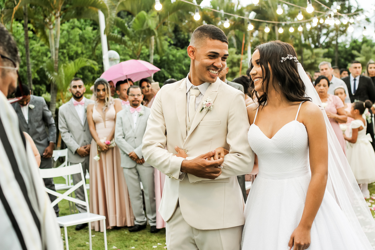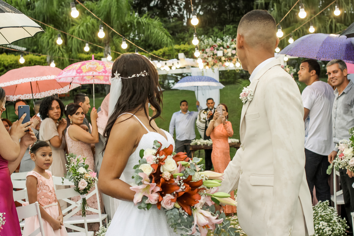 Um casamento lindo que começou com uma luz incrível e terminou com uma chuva que não atrapalhou nem um pouco o amor dos noivos durante a cerimônia, Deus abençou que deu tudo certo o casal não se desperou nem um pouco pelo contrário as vezes algumas coisa saem fora do nosso planejamento como um casamento debaixo da chuva mais isso só fez deixar o casamento mais romântico.